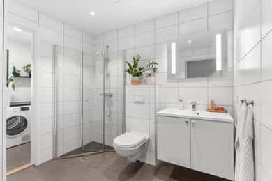 Informasjon er hentet fra vedlagte eierskifterapport, datert 16.12.2025 Bygning: Vertikaldelt tomannsbolig over 2 etasjer. Antatt støpt såle mot grunn. Yttervegger oppført som bindingsverk, kledd utvendig med liggende kledning. Flatt tak tekket med takpapp/membran. Vinduer: 3-lags vinduer fra byggeår. Vinduene ble visuelt undersøkt og kontrollert ved stikkprøver. Vinduene fremstår i normal stand. Balkong/terrasse: Sydøstvendt takterrasse på 47m2 med tilkomst fra stue i 2.etasje. Terrassen fremstår hovedsakelig i normal stand. Normalt periodisk vedlikehold må dog forventes. VVS-installasjoner: Varmtvannsbereder på ca 200 liter plassert på vaskerom fremstår i normal stand. Luft til luft varmepumpe plassert på kjøkken fremstår i normal stand. Luftbehandling: Balansert ventilasjon gjennomgående i boligen. Ikke funnet avvik på befaringsdagen Elkraft: Sikringsskap med automatsikringer plassert på vaskerom. e punkt "Tilleggsopplysninger" for beskrivelse av løse kabler. Ansvarlig bygningssakkyndig har ikke spesialkompetanse innen elektrisk anlegg. Vurdering blir gjort ut ifra opplysninger og observasjoner gjort på befaringsdagen, og må ikke forveksles med en fullstendig gjennomgang av anlegget. Det anbefales på generelt grunnlag å få utført en utvidet el-kontroll. Nedenfor gjengis en kort oppsummering der den bygningssakyndige har beskrevet avvik ved boligen som har fått tilstandsgrad 2 (TG2) eller 3 (TG3). TG2 med avvik som kan kreve tiltak: Kjøkken: TG2 settes på grunn av sprekk i platetoppen. Eierskifterapport ligger vedlagt i salgsoppgaven. Interessenter anbefales å sette seg inn i denne.