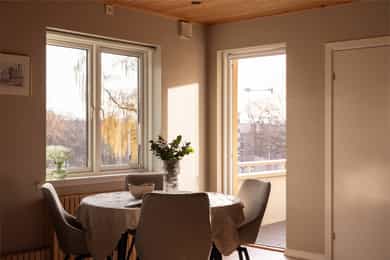 Lys og gjennomført 3-roms i klassisk bygård fra 1958 med smart planløsning, store vindusflater og to gode soverom. Attraktiv og rolig beliggenhet med kort vei til parker, servicetilbud og gode kollektivforbindelser. Åpen stue- og kjøkkenløsning med utgang til hyggelig balkong med utsyn mot grøntarealer. Hovedsoverommet har stor garderobeløsning. Moderne bad, praktisk eget vaskerom. Gjennomgående pene overflater, downlights og stilrent kjøkken. Leiligheten har både lofts- og kjellerbod. Høydepunkter: - Stor, solrik balkong med god plass til utemøbler, sol fra morgen til 19:30 - God standard, bad i 2019/20 i regi av sameiet. - Kort gange til kollektiv transport - Parkering etter venteliste - IN-ordning, kan redusere felleskostnader til 4452 per mnd Velkommen til visning.