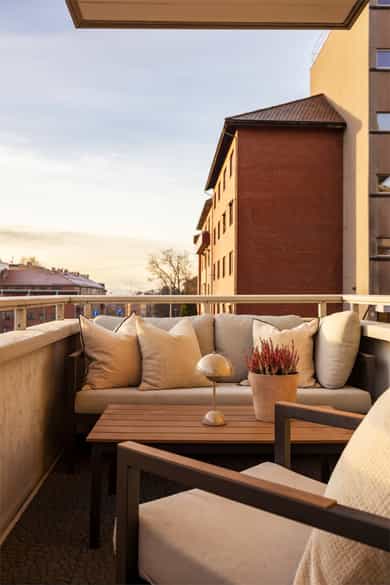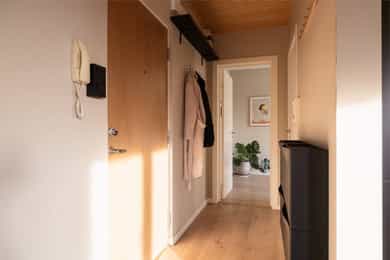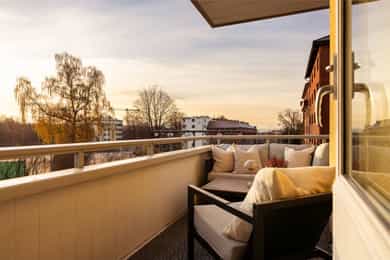 Lys 3-roms hjørneleilighet med solrik balkong, utsikt mot grøntområde og moderne bad. Heis, v.v & fyring ink. IN-ordning