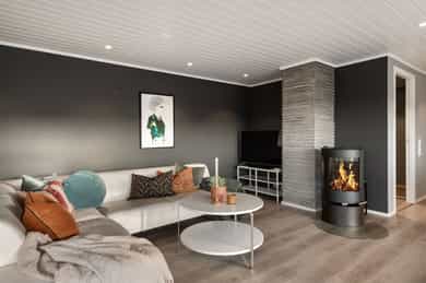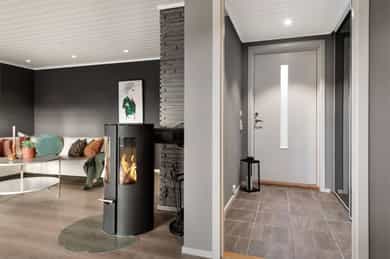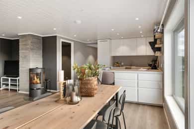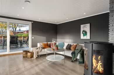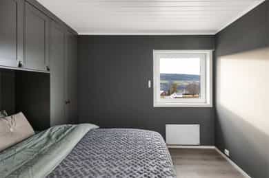 • Leiligheten har varmepumpe og peisovn til oppvarming.