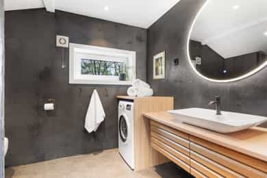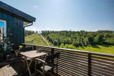 ENEBOLIG Utvendig: Taktekking: Taket er tekket med korrugerte stålplater fra nyere dato og med ukjent alder. Tak på tilbygg er nytt. Nedløp og beslag: Takrenner og nedløp av plastbelagt stål. Heldekkende beslag over pipe. Det er ikke krav til snøfangere da takvinkel er under 27 grader. Veggkonstruksjon: Yttervegger i bindingsverk med stående kledning. Eier har etterisolert hele huset samt lagt ny panel. Takkonstruksjon/Loft: Saltakkonstruksjon. Konstruksjonen er ikke undersøkt/vurdert. Det er kun mindre luke på ca. 40x50 cm og derfor ikke fysisk mulig å gå opp på loftet. På et generelt grunnlag anbefales det å montere loftsluke med nedtrekkbar stige for å jevnlig kunne inspisere loftet. Vinduer med rammer og karmer i PVC med 3-lags isolerglass fra 2020. Hovedytterdør i tre med ukjent alder. Ytterdør kjeller i tre med høy alder. Verandadører i PVC med stort glassfelt med isolerglass fra 2020. Fra stue og det ene soverommet er det utgang til veranda på 18 kvm. Terrasse ved inngangsparti på 9 kvm. Terrasse i hage på 22 kvm. Innvendig: Etasjeskille/gulv mot grunn: Etasjeskillere i tre. Det er målt med nivålaser som viser at det er stedvise skjevheter i de fleste rom, dog innenfor referanseverdier i henhold til dagens forskrift. Det understrekes følgende: Boligen er møblert, noe som gjør det utfordrende å gjennomføre fullstendige målinger av skjevheter med nivålaser i alle rom. Målingene er derfor utført på tilfeldig valgte, tilgjengelige steder, og det kan forekomme avvik. Det presiseres at etasjeskillere ikke omfattes av forskrift om tryggere bolighandel. Pipe og ildsted: Vedovn i stue/kjøkken. Rom Under Terreng: Det er ikke fysisk mulig med hulltaking på rom under terreng da det er murvegger i kjeller. Se «Fuktsikring og drenering» for fuktmåling og vurdering. Tomteforhold: Byggegrunn: Byggegrunn av fjell. Grunnmur og fundamenter: Grunnmur av plasstøpt betong og Leca. Terrengforhold: Flat, skrånende og kupert tomt. Terrenget heller ikke inn mot bygningskroppen. Utvendige vann- og avløpsledninger: Utvendige avløpsrør av ukjent type og vannledning av ukjent type med ukjent høy alder. Offentlig vann og avløp via private stikkledninger. BOD Prefabrikert utførelse. Saltak tekket med papp. Etterslep på vedlikehold. BOD Prefabrikert laftet utførelse. Oppført på ringmur av stein. Saltak tekket med shingel. Etterslep på vedlikehold. Følgende forhold er kommentert med TG2 - avvik som kan kreve tiltak: - Taktekking: Mer enn halvparten av forventet brukstid er passert på taktekkingen. Mer enn halvparten av forventet brukstid er passert på undertak. Gjelder eldste del. Konsekvens/tiltak: Overvåk tilstanden jevnlig. For å få tilstandsgrad 0 eller 1 må tekkingen skiftes ut, men tidspunktet for når dette er nødvendig er vanskelig å si noe om. Når taktekking og undertak begynner å bli gamle, øker risikoen for lekkasjer, noe som kan føre til omfattende og kostbare reparasjoner av underliggende konstruksjoner dersom en ikke foretar tiltak på konstruksjonene før dette oppstår. - Nedløp og beslag: Mer enn halvparten av forventet brukstid er passert på renner/nedløp/beslag. Konsekvens/tiltak: Overvåk tilstanden jevnlig. For å få tilstandsgrad 0 eller 1 må beslag/renner/nedløp skiftes ut, men tidspunktet for når dette er nødvendig er vanskelig å si noe om. Utskifting av beslag, renner og nedløp må påregnes på sikt for å unngå lekkasjer og følgeskader på bygningen, da risikoen for skader øker med alderen på komponentene. - Veggkonstruksjon: Det er ingen eller liten lufting i nedre kant av kledning mot grunnmur. Ingen eller liten lufting i nedre kant av kledning var en vanlig utførelsesmåte på oppføringstidspunktet og i tråd med datidens byggeskikk. Krav til lufting og fuktsikring har blitt skjerpet i senere tid, og forholdet vurderes derfor opp mot dagens anbefalinger. Konsekvens/tiltak: Uten tilstrekkelig lufting bak bordkledningen kan fuktighet som trenger inn bak bordene eller gjennom veggen innenfra ikke tørke opp. Dette skaper ideelle forhold for råtesopp og muggvekst. - Dører: Karmene i dører er værslitte utvendig og det er sprekker i trevirket. Gjelder ytterdør til kjeller. Videre opplyser eier: «Når det regner kraftig, samler det seg vann i gulvskinnen til heve/skyvedøren». Konsekvens/tiltak: Det må påregnes noe vedlikehold og at enkelte dører må skiftes ut. - Balkonger, terrasser og rom under balkonger: Det er værslitt/oppsprukket trevirke/trepaneler. Konsekvens/tiltak: Lokal utbedring/utskiftning bør utføres. - Etasjeskille/gulv mot grunn: Det er påvist andre avvik: Det registreres noe knirk stedvis. Konsekvens/tiltak: Ikke nødvendig med tiltak nå, men ved en renovering bør det sørges for å unngå knirk. - Pipe og ildsted: Ildfast plate mangler på gulvet under sotluke/feieluke på pipe. Mer enn halvparten av forventet brukstid er passert på pipe. Konsekvens/tiltak: Tidspunkt for piperehabilitering nærmer seg. Det anbefales å montere ildfast plate under luker på pipe. Det er ikke et krav til ildfast plate under sotluke/feieluke, men det anbefales at det etableres. Selv med høy alder kan en pipe fungere godt hvis den er tatt vare på, men innvendig slitasje, sot, varme, og temperatursvingninger gjør ofte at rehabilitering kreves for trygg bruk. - Krypkjeller: Det er ikke adkomst til deler av krypkjelleren. Krypkjeller er kun vurdert i tilgjengelige deler. Krypkjeller regnes for å være en risikokonstruksjon som er utsatt for fukt- og råteskader i bunnsvill, trebjelkelaget og andre tilstøtende konstruksjoner, på grunn av fuktighet fra grunnen og kondensering ved temperaturforskjeller. Selv om det ikke er avdekket tegn på skader, betyr ikke dette nødvendigvis at det ikke foreligger skader i eller i forbindelse med krypkjelleren. Det er ikke tilfredsstillende ventilering av krypkjeller. Det er manglende fuktsperre på bakken. Krypkjelleren har risiko for ytterligere skadepotensia