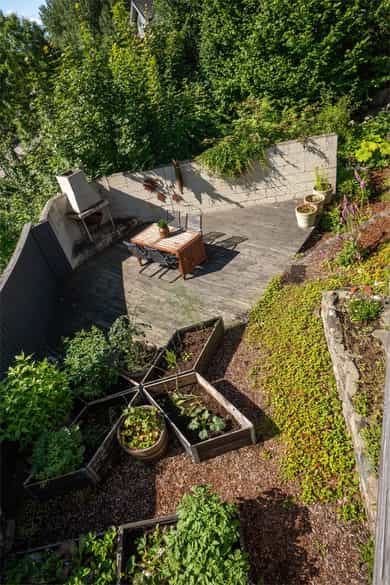 TBA 2: 22 kvm. Terrasse ved hage.