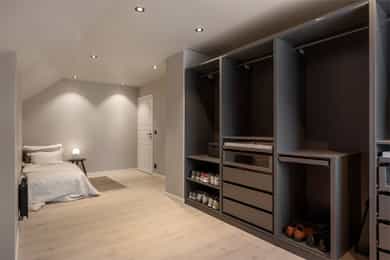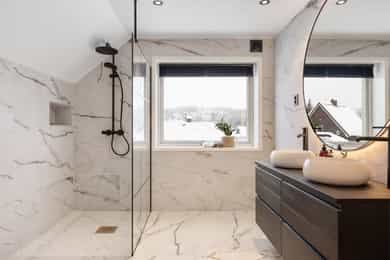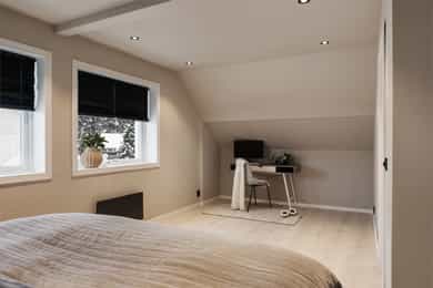 • Utstrakt bruk av gulvvarme. Klargjort for peisovn og varmepumpe.