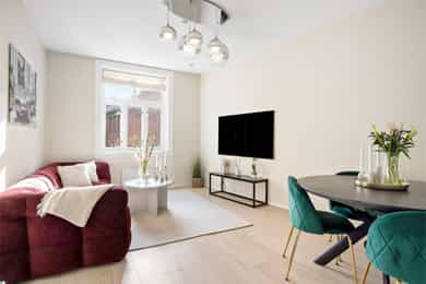 • Beliggende i svært høy 1. etasje i klassisk bygård