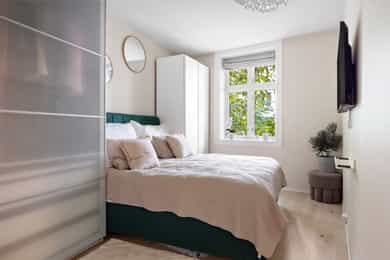 Velkommen til Valdresgata 2A – en gjennomgående og stilfull 2-roms med god planløsning. Leiligheten ligger tilbaketrukket i en rolig blindvei uten gjennomgangstrafikk, midt på populære øvre Grünerløkka – kun et steinkast fra Birkelunden. Her bor du sentralt, men likevel fredelig, med alt du trenger rett utenfor døren.