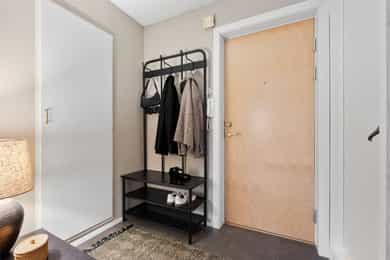 ENTRÉ - Velkommen inn! Innbydende entré med god plass til oppbevaring av yttertøy og sko. Entré med fliser på gulv og malte flater på vegg/tak. Fra entréen er det adkomst til en praktisk bod og baderom. BADEROM Romslig flislagt baderom, med baderomsinnredning bestående av benkeskap og veggskap med profilerte fronter, samt toalett og dusjhjørne. Baderommet har opplegg til vaskemaskin. STUE/KJØKKEN Pent og praktisk kjøkken med innredning fra 2020. Kjøkkeninnredning med glatte fronter, laminat benkeplate med nedfelt kum i rustfritt stål. Fliser på gulv, malte flater på vegger og tak. Luftig og lys stue med store vindusflater som slipper inn rikelig med naturlig lys og en flott utsikt. Her er det god plass til å innrede med sofagruppe, TV-benk, spisebord og annet ønskelig møblement. På stuen er det laminat på gulv. SOVEROM Lyst og pent soverom med store vindusflater. Rommet har god plass til å innrede med dobbeltseng, nattbord og klesskap. Her er det laminat på gulv, malte flater på vegger og himling.