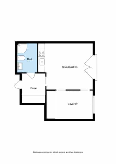 Arealeffektiv 2-roms leilighet i 4. etasje - IN-ordning - Heis - Umiddelbar nærhet til tog / sentrum
