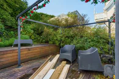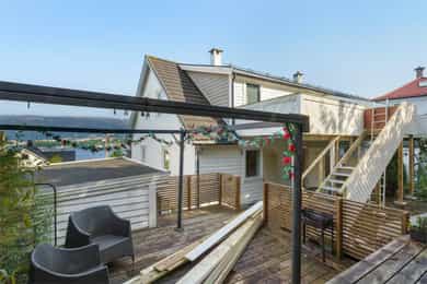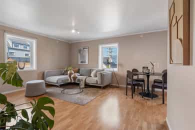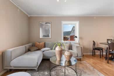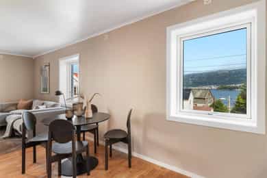 Styreleder opplyser videre at det har vært befaring på loftet vedr. å muligens støtte opp bærebjelkene til taket og skifte kledning på resten av veggen ved inngangsdørene. Borettslaget har ikke fått pristilbud på dette enda. Kjøper må påregne økt fellesgjeld og/eller felleskostnader som følge av overnevnte. Det gjøres oppmerksom på at noen av bildene avviker noe fra hvordan det ser ut i dag, da leiligheten er utvidet og fasaden er noe endret. For ordens skyld opplyses det at bygningssakkyndig Nikolai Haaland er i nær relasjon med en av våre ansatte som også er aksjonær i Nordvik Bergen. Borettslagsmodellen innebærer at borettslaget eier eiendommen, mens andelseierne eier andeler i borettslaget, som gir borett til en bestemt bolig. Andelseierne har ikke personlig ansvar for borettslagets fellesgjeld, men andelseierne må dekke borettslagets løpende utgifter. Manglende innbetaling av fellesutgiftene som følge av andre andelshaveres mislighold, eller der borettslaget sitter på fraflyttede og/eller usolgte andeler, må dekkes av de øvrige andelseierne. Borettslaget har legalpanterett i andelen for krav på dekning av felleskostnader og andre krav fra borettslaget på inntil 2 ganger folketrygdens grunnbeløp. Kjøper og selger er forpliktet til å undertegne standard kjøpekontrakt utarbeidet av Nordvik i forbindelse med eiendomstransaksjonen. Kjøpekontrakt kan besiktiges hos eiendomsmegler før bud inngis. Kontakt eiendomsmegler for spørsmål. Selger leverer eiendommen i ryddig og rengjort stand.