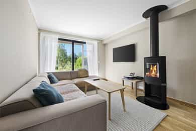 Nyere 3 roms leilighet m/høy standard og carport, flytt rett inn- Fine uteområder/solforhold - 2 sov, bad og vaskerom