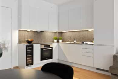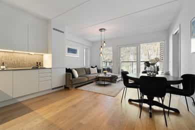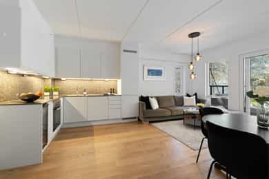 Lys og delikat 2-roms leilighet med usjenert balkong i eksklusivt bygg fra 2019. Leiligheten vender mot rolige omgivelser og får rikelig med lysinnslipp fra store vindusflater. Sameiets easy living-konsept inkluderer fasiliteter som treningsrom, sykkelrom, lounge, skistall, vaskehall til bil og felles takterrasse. Rolig og tilbaketrukket nær turområder, samtidig meget sentralt.