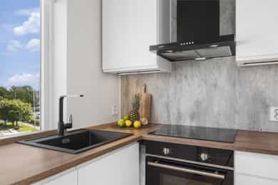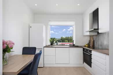 Integrerte hvitevarer på kjøkken medfølger.