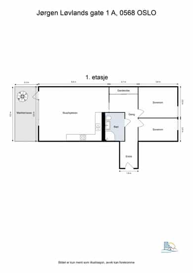 Leilighet beliggende i byggets . etasje. Det er adkomst via heis og felles trappeoppgang. Oppgangen har porttelefon. Leiligheten inneholder: Entré, 2 soverom, bad, og stue/kjøkken med utgang til markterrasse. ENTRÉ: Velkommen inn! Leiligheten har en innbydende entré som skaper et umiddelbart godt førsteinntrykk. Det er god plass til oppbevaring av yttertøy i den romslige skyvedørsgarderoben. LYS OG LUFTIG STUE M/UTGANG TIL MARKTERRASSE: Stuen er lys og luftig med store vindusflater som sørger for rikelig med innslipp av naturlig lys. Planløsningen åpner opp for flere møbleringsmuligheter med god plass til sofagruppe, TV-møbler og spisebord med tilhørende stoler. Gulvet er belagt med flott 3-stavs parkett, og overflatene er malt i lyse fargetoner. Et perfekt utgangspunkt for å innrede med egne møbler og gjenstander for å skape ditt drømmehjem. Fra stuen er det utgang til en herlig nordvestvendt markterrasse på ca. 11 m², med tilhørende hageflekk. Terrassen og hageområdet gir gode utearealer med fine solforhold og oppleves som et skjermet og hyggelig uterom. I vår- og sommerhalvåret blir dette en naturlig forlengelse av stuen, godt egnet for sosiale sammenkomster med familie og venner. Her er det rikelig med plass til utemøbler, beplantning og gassgrill, samtidig som hageflekken gir mulighet for grønne innslag, blomster, urter eller et lite lekeområde. ÅPEN KJØKKENLØSNING: Stilrent Marbodal-kjøkken med rikelig skap- og benkeplass. Kjøkkenet har glatte fronter og en slitesterk laminatbenkeplate med nedfelt vask og skyllekum. Det er integrert platetopp og stekeovn, opplegg for oppvaskmaskin samt avtrekk over kokeplass. HOVEDSOVEROM: Soverommet er romslig, med plass til dobbeltseng, nattbord og tilhørende møbler. De lyse fargevalgene på veggene, sammen med store vindusflater, skaper en lys og behagelig atmosfære. Det er rikelig med oppbevaringsplass i det romslige skyvdørsgarderoben. SOVEROM 2: Soverommet er romslig og har plass til både seng og øvrige møbler. Det er et allsidig rom som passer perfekt som barnerom, gjesterom eller hjemmekontor, tilpasset dine behov. I tillegg byr rommet på gode oppbevaringsmuligheter med garderobeskap. BADEROM: Pent, flislagt baderom med elektrisk gulvvarme. Badet er innredet med vegghengt klosett, servant med innredning, speil med lys og dusjkabinett. Det er opplegg for vaskemaskin. Mekanisk avtrekk. OPPBEVARING: Leiligheten disponerer en kjellerbod på ca. 4,9 m², merket med 4. Det gjøres særskilt oppmerksom på at bod som er medtatt som BRA-e og i totalt BRA ligger på fellesareal, men disponeres av denne leiligheten. ØVRIG INFORMASJON: Entrédør: Lyd- og brannklassifisert entrédør. Vinduer: Vinduer med 2-lags isolerglass, prod. 2011. Balkongdør: Balkongdør med 2-lags isolerglass, prod. 2011. Innerdører: Innvendig har boligen glatte innerdører, samt skyvedør med glassfelt fra gangen til stue/kjøkken. Glatt innvendig dør til bad. Overflater, etc.: Himlinger med prefabrikerte betongelementer. Vegger med malt betong og malte plater. Gulv med 3-stavs parkett. Takhøyden ble målt i entré til: 2,45 m og i stue/kjøkken til: 2,44 m. Ventilasjon: Mekanisk ventilasjon. Avtrekk fra kjøkken og bad. Elektrisk anlegg: Sikringsskap med automatsikringer plassert i skap i gangen. Oppvarming: Boligen varmes opp av vannbåren varme tilknyttet til radiatorer. Elektrisk gulvvarme på bad.
