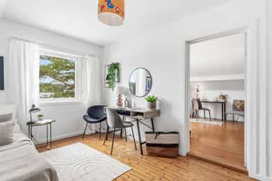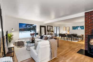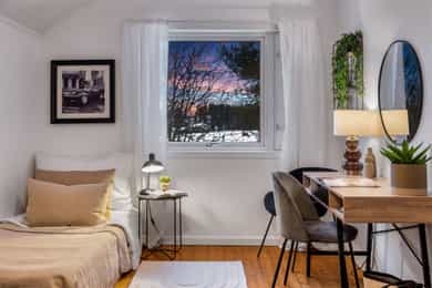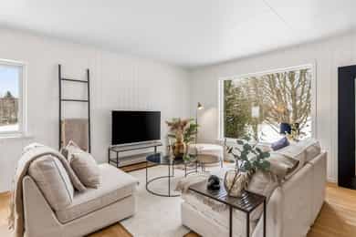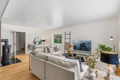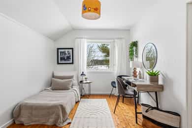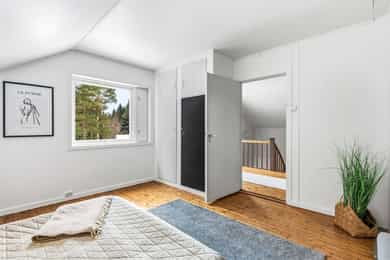 Bo landlig i Gullerudveien 1, en familievennlig enebolig over tre plan. Boligen har en god planløsning med separat kjøkken, lekkert bad m/opplegg for vaskemaskin og tørketrommel, tre soverom samlet og toalett i alle etasjer. Omgivelsene er naturskjønne, i et stille og rolig område med flotte turmuligheter. Skjermet plassert blant trærne har boligen en usjenert beliggenhet, på en stor tomt med lite innsyn, fine uteplasser og god utsikt over landskapet. Bilen parkeres i eller utenfor en garasje. Kort fortalt: - Romslig enebolig over tre plan - Idyllisk beliggenhet - Skjermet og usjenert plassering - Garasje og gruslagt innkjørsel - 1,2-måls tomt med stor hage - Nyoppusset baderom og toalettrom i 2025 - Ny drenering 2014 - El-kontroll utført i 2025 - Fibernett - Nye avløpsrør