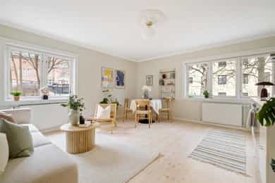 Velkommen til Sofies gate 60! En nydelig 3-roms hjørneleilighet med tilbaketrukket beliggenhet i skjæringspunktet mellom Bislett, Adamstuen og Bolteløkka. Her bor du tilbaketrukket, men med pulserende byliv i nærområdet. Videre har du umiddelbar nærhet til flotte parker. Leiligheten har lyse, luftige rom, samt en rekke sjarmerende detaljer som rosett, stukkatur og heltre furugulv (nyslipt i 2026). Videre inneholder leiligheten entré, stue med åpen kjøkkenløsning, 2 soverom og et lekkert bad. Verdt å merke seg: - Lys og innbydende 3-roms hjørneleilighet - Nyslipt, heltre furugulv - Rosett og stukkatur - Varmtvann, fyring, kabel-TV og internett inkl. - Aksjelaget har 7 parkeringsplasser («Førstemann til mølla»-prinsippet) - Ingen dok.avgift eller forkjøp - Innvendig bod, samt kjellerbod