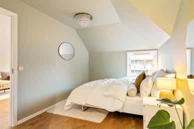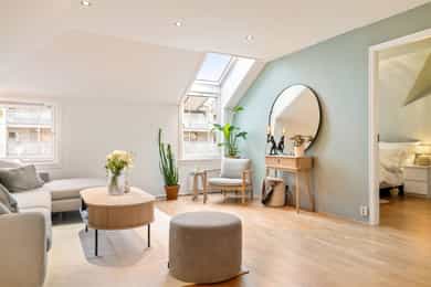 Velkommen til Maridalsveien 238! Dette er en lys og delikat 2-roms toppleilighet beliggende på populære Bjølsen/Nydalen. Boligen fremstår gjennomført med harmoniske farge- og materialvalg, og har en attraktiv kombinasjon av rolig beliggenhet og sentral nærhet til fasiliteter. Her bor du med umiddelbar tilgang til handel, serveringstilbud, kollektivtransport og rekreasjonsområder. - Innbydende 2-roms med svært god planløsning - Vestvendte vinduer, gode lysforhold - Romslig soverom med walk-in-closet - Varmtvann inkludert - Tilhørende kjellerbod på ca. 6 m² - Mulighet for kjøp av garasjeplass med elbillader* - Utvidelsesmulighet ved kjøp av loftsareal - stort potensial* - Velfungere borettslag - Frodig og solrik felleshage - Sentralt i byen, men tilbaketrukket i grønne og rolige omgivelse