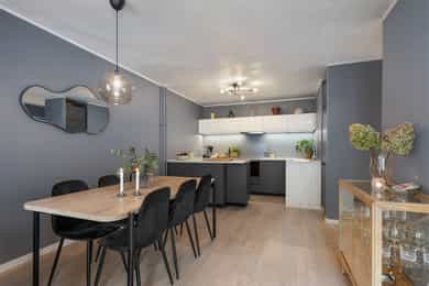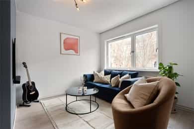 Velkommen til Thorvald Meyers gate 5 – en romslig og oppgradert 3-roms med attraktiv beliggenhet øverst på Grünerløkka med kort vei til alt. Thorvald Meyers gate byr på en urban beliggenhet midt på Grünerløkka, med umiddelbar nærhet til populære caféer, restauranter, parker og svært gode kollektivforbindelser. Leiligheten fremstår som moderne og velholdt etter oppussing i 2019/2022, og holder en gjennomgående god standard. Fra stuen er det utgang til balkong. I tillegg disponerer leiligheten både innvendig bod og kjellerbod. Høydepunkter: - Nyoppusset i 2019/2020 - Bad totalrenovert i 2022 - Balkong på 6 kvm - 2 romslige sov - Heis - Kjellerbod + innvendig bod - Felles terrasse - Parkeringsmuligheter - IN-ordning, mulig å redusere felleskostn. - Vv, fyring og fibernett inkl.