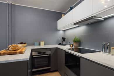 Leiligheten er en lys og romslig 3-roms med attraktiv beliggenhet på Øvre Grünerløkka. Den ligger i byggets 6. etasje og har trappefri adkomst fra hovedinngangen. Boligen fremstår gjennomgående pen med moderne fargevalg og enstavs laminat gulv. Fra stuen er det utgang til en østvendt balkong på omtrent 6 m² med plass til utemøbler og gode solforhold på morgenen. Den åpne planløsningen mellom stue og kjøkken gir en luftig romfølelse. Planløsningen består av entré, bad, to soverom, kontorplass, walk-in-garderobe og stue med åpen kjøkkenløsning. I tillegg disponeres en kjellerbod på ca. 3 m². Entré: Romslig entré med integrert garderobeskap for oppbevaring av yttertøy og sko. Nedsenket himling med downlights gir god belysning. Stue: Stor stue med plass til både sittegruppe og spisebord. Planløsningen gir naturlige soner for møblering, og rommet får godt med dagslys. Herfra er det utgang til balkong. Kjøkken: Moderne kjøkkeninnredning fra 2021 med slette fronter og laminert benkeplate med nedfelt vask. Integrerte hvitevarer og kullfiltervifte i overskap. Waterguard er montert under oppvaskmaskinen, og vanninstallasjonene er fra 2021. Soverom 1: Romslig soverom med plass til dobbeltseng og garderobeløsning. Vender mot rolige Thorvald Meyers gate. Malt i lune farger og med enstavs gulv. Soverom 2: Også et godt soverom med plass til seng og oppbevaring. Beliggende mot samme rolige gate og med tilsvarende overflater. Walk-in / innvendig bod; Praktisk walk-in-garderobe med god lagringsplass for klær og utstyr. Kontor: Hyggelig kontorplass etablert i mellomgangen, egnet til hjemmekontor. Bad: Flislagt bad med varmekabler i gulvet. Totalrenovert av borettslaget i 2022, samtidig som soilrør ble oppgradert. Badet har dusjhjørne med svingbare glassvegger, termostatstyrt dusjbatteri med hånd- og regndusj, veggmontert servantinnredning og speilskap med belysning. Opplegg for vaskemaskin og vannfordelerskap med stoppekraner er plassert på badet.