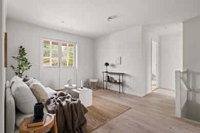 Attraktiv enebolig fra 2014 med solrike uteområder! 80 m² terrasse, 6 m² balkong - Dobbelgarasje- Peis - Familievennlig!