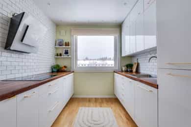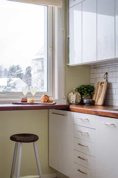 - Pusset kjøkkenbenk og skiftet håndtak til skuffer og skap på kjøkkeninnredning