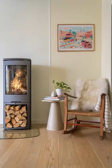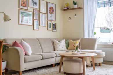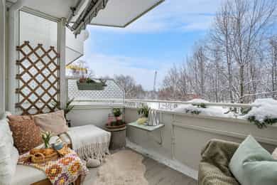 Lys og delikat 3-roms hjørneleilighet med solrik balkong og peis! Lekkert bad fra 23. 5 min til T-bane. Forkjøp avklart