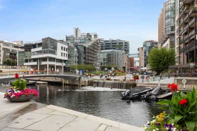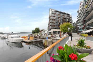 Påkostet og arealeffektiv 3-roms sentralt på Tjuvholmen - Heis og balkong - Delikat oppusset i 2024 - Felles takterrasse
