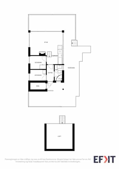 BRA-i: 35 kvm. Gang, bad, soverom, soverom 2, stue/kjøkken