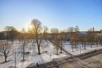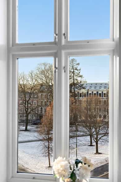Klassisk 3-roms m/ nydelig utsyn mot frodig park | Stukkatur & rosett | Peis | Balkong | 2,98m takhøyde | 11m2 bod