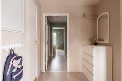 Korpåsen 123B har en fin beliggenhet i et veletablert og attraktivt boligområde på Gullhella i Asker. Leiligheten ligger skjermet til i sameiet, med lite innsyn og gode solforhold på begge sider av bygget. Her bor du i rolige omgivelser med kort vei til både natur, servicetilbud og offentlig kommunikasjon, samtidig som Asker sentrum er lett tilgjengelig. Området byr på et bredt tilbud av rekreasjons- og friluftsmuligheter. Det er kort vei til fjorden med flere populære badeplasser som Sjøvollbukta, Spirabukta, Blakstadbukta og Hvalstrand. I tillegg finnes det gode muligheter for båtliv, med blant annet Asker seilforening ved Børsholmen og flere nærliggende båthavner, herunder Leangbukta, Holmenskjæret og Vollen Marina. Den populære kyststien følger fjorden og gir flotte turmuligheter i naturskjønne omgivelser. For den som trives i skog og mark, grenser området til Vardåsen, med noen av Askers beste tur- og skiløyper rett i nærheten. Vardåsen skisenter ligger i gangavstand fra boligen og er et populært tilbud vinterstid. I nærområdet finner du også Aaby gård og Konglungen med flotte turområder. Risenga-området og Askerhallen ligger en kort kjøretur unna og byr på et bredt idrettstilbud med blant annet fotballbaner, ishockeyhall, tennishall og svømmehall. Området har også et godt tilbud av barnehager og skoler, med Blakstad skole og Risenga ungdomsskole i nærområdet, samt Espira Gullhella barnehage og Barnas Hus Gullhella i kort gangavstand. Offentlig kommunikasjon er lett tilgjengelig, med ca. 11 minutters gange til Gullhella togstasjon og rundt 8 minutters gange til bussholdeplass. Dagligvarehandelen kan gjøres på Rema 1000 Gullhella eller Kiwi Bondi, begge i gang- og sykkelavstand. På Vettre, ca. 7 minutters kjøretur unna, finner du et hyggelig nærsenter med blant annet dagligvarebutikk, apotek, lege, kafé og veterinær. Asker sentrum nås på ca. 8 minutter med bil og byr på et bredt utvalg av butikker, serveringssteder og kulturtilbud. SELGER FORTELLER Hva kommer dere til å savne med boligen og området? Det vi kommer til å savne aller mest, er den sjeldne kombinasjonen av natur og byliv. Her har vi hatt alt vi trenger rett utenfor døren, flotte turområder, kort vei til sentrum og enkel tilgang til butikker, kollektivtransport, barnehager og skoler. Likevel er det fellesskapet som har gjort Korpåsen til et helt spesielt sted å bo. Gjennom snart fem år har vi blitt kjent med mange hyggelige naboer, og området oppleves både trygt, inkluderende og levende. Hvilke er deres favoritturer i nabolaget? Vi har satt stor pris på de mange turmulighetene som starter rett utenfor døren. En av favorittene er turen gjennom skogen opp til Vardåsen, med flott utsikt som belønning. Vi liker også rolige turer langs Bondistranda, hvor man kan nyte nærheten til vannet, eller den idylliske stien langs elva ned mot Blakstad. Her finnes turer som passer like godt til hverdagsmosjon som til rolige helgeturer. Hvem er naboene, og hvordan er nabolaget? Nabolaget er sammensatt og trivelig, med alt fra småbarnsfamilier til enslige og pensjonister. Det gir en god balanse mellom liv og ro. Samholdet er godt, og man møtes naturlig gjennom dugnader, juletretenning og små hverdagsmøter ved sandkassen eller fotballbanen. Det er også flere husdyr i området, noe som bidrar til et hyggelig nærmiljø. Området er rolig, uten støy eller festliv, og oppleves som trygt for både store og små. Litt om nærmiljøet og området generelt Her bor man svært praktisk til, med det meste innen rekkevidde. Bussholdeplass ligger kun ca. 5 minutters gange unna, og lokaltoget nås på rundt 10 minutter. Det er to nærbutikker i gangavstand (ca. 15 minutter), barnehage like ved (ca. 5 minutter) og skole rundt 15 minutters gange. I tillegg har du naturen som nær nabo, med skog, fjell og innsjø rett i nærheten. For den aktive ligger Risenga idrettspark like i nærheten, med badeland, skøytebane, Varner Arena, tennisbaner og idrettshall. Her får du en svært funksjonell beliggenhet kombinert med et rikt tilbud av fritidsaktiviteter.