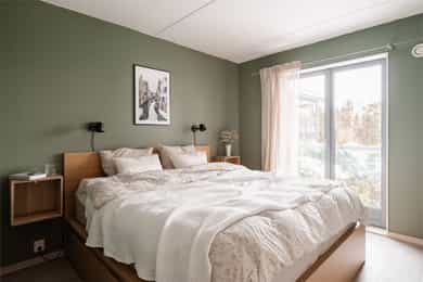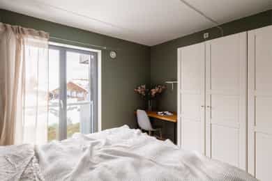 I tillegg har hovedsoverommet fransk balkong med rekkverk i stålramme og sikkerhetsglass.
