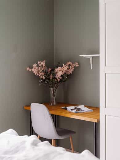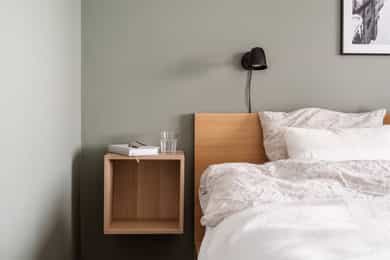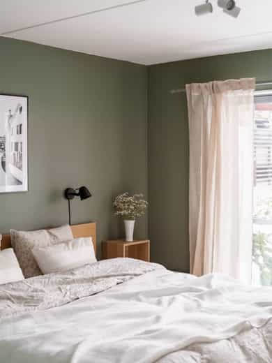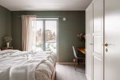 - Montert plisségardin på ett soverom.