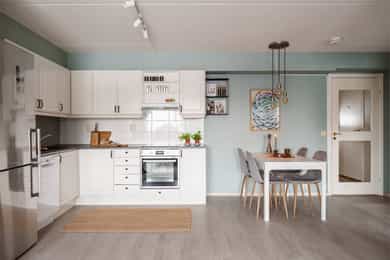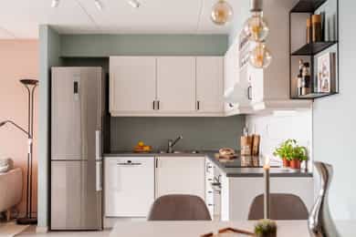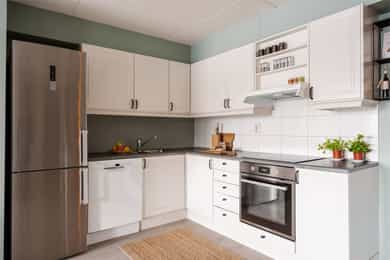 Følgende hvitevarer følger med boligen: Kjøleskap, oppvaskmaskin, ovn og vaskemaskin.