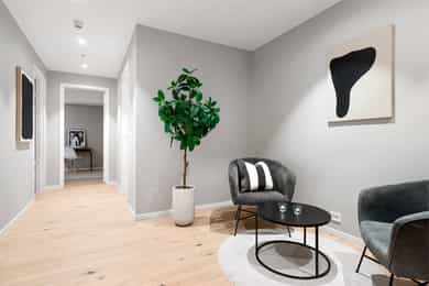 Velkommen til Nils Collett Vogts vei 18A - En eksklusiv og ny leilighet på 146 m² BRA-i i attraktive Holmenkollen. Leiligheten ble nylig ferdigstilt (august 2025), har en god planløsning, høy standard og gode kvalitetsløsninger - både i konstruksjonen av bygget og i materialene som er valgt. Her får du kvalitetskjøkken fra Poliform, store fliser og eksklusiv baderomsinnredning fra Expo Nova. Leiligheten er én av kun tre store leiligheter i et moderne bygg, med én leilighet per etasje og heisadkomst. Enkel tilgang til bod på 7 m² på leilighetsplan. Leiligheten har en meget god planløsning som blant annet omfatter to delikate bad, separat vaskerom, to soverom, forkjøkken og mulighet for stort vinrom. Leiligheten har en terrasse på 15 m² og eksklusiv bruksrett til en stor hage.