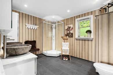 -Det er etablert et påbygg med adkomst fra vaskerommet. Dette er av nyere dato og fremkommer ikke på tegningene.