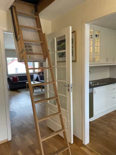 Det er i forbindelse med salget utarbeidet en tilstandsrapport fra bygningssakkyndig. Tilstandsrapporten er en teknisk gjennomgang av boligen med oppdagede avvik. Vedlagt salgsoppgaven følger tilstandsrapporten og selgers egenerklæring. Disse må leses nøye av interessenter før bud inngis. Opplysninger gitt i tilstandsrapporten anses å være kjent for kjøper, og det kan derfor ikke reklameres på forhold som fremkommer av tilstandsrapporten. Forhold som har fått TG2 og TG3 må gjennomgås spesielt nøye, da disse indikerer avvik fra normal slitasje og/eller høy alder, med mulig behov for utbedring. Bygningsdeler som har fått TGIU er ikke undersøkt av takstmann. Beskrivelsen av boligen som følger er hentet fra tilstandsrapporten: Boligen fremstår som normalt vedlikeholdt sett i forhold til alder, men har flere avvik som bør følges opp. Det er ikke registrert akutte konstruksjonssvikt, men flere forhold knyttet til fukt, ventilasjon, tekniske installasjoner og sikkerhet gir økt risiko for fremtidige skader. Bygningsdeler som har fått TG2: Utvendig > Veggkonstruksjon Vurdering av avvik: • Det er ingen eller liten lufting i nedre kant av kledning mot grunnmur. • Bordkledning går stedvis nesten helt ned i terreng. Det er lite mellomrom mellom dekke og veggpanel. Dette gir begrenset med luftgjennomgang, og det var ikke mulig å vurdere lufteskjiktet på boligen. Konsekvens/tiltak • Uten tilstrekkelig lufting bak bordkledningen kan fuktighet som trenger inn bak bordene eller gjennom veggen innenfra ikke tørke opp. Dette skaper ideelle forhold for råtesopp og muggvekst. • Lokal utbedring bør foretas for å øke avstanden mellom terreng og bordkledning. Når avstanden mellom dekke og trepanel er liten, øker faren for utvikling av skader i forbindelse med fukt. Veggen har god beskyttelse av takutstikk ved svalgang og terrasse, men dette er et område som burde holdes under oppsyn. Utvendig > Takkonstruksjon/Loft Vurdering av avvik: • Det er påvist fuktskjolder/skader i takkonstruksjonen. Ved befaring ble det registrert synlige fuktskjolder rundt pipe, noe som indikerer at konstruksjonen har vært utsatt for fuktbelastning. Fuktskjolder kan være et resultat av tidligere lekkasjer, kondensproblematikk eller utilstrekkelig lufting. Selv om det ikke nødvendigvis foreligger aktiv lekkasje på befaringstidspunktet, representerer dette en økt risiko for følgeskader. Konsekvens/tiltak • Det må gjøres nærmere undersøkelser. Konsekvens: Fare for vedvarende fuktpåvirkning som kan føre til råte- og muggsoppdannelse, redusert styrke i undertaket og kortere levetid på takkonstruksjonen. Tiltak: Det anbefales nærmere undersøkelser for å avdekke årsak til fuktskjolder. Eventuelle lekkasjepunkter må utbedres. Ved vedvarende skader eller svekkelse bør utskifting av berørte sutakplater og utbedring av lufting/avrenning vurderes. Utvendig > Vinduer Vurdering av avvik: • Det er påvist at enkelte vinduer er vanskelig å åpne/lukke. Vinduene fremstår med noe elde og slittasje, og flere av vinduene går på mot karm ved åpning og lukking. Konsekvens/tiltak • Vinduer må justeres. Eldre vinduer krever jevnlig vedlikehold for å opprettholde funksjon og levetid. Det bør påregnes gradvis utskifting eller oppgradering på sikt for å oppnå bedre isolasjon, redusere varmetap og sikre god tetthet. Eventuelle skader, trekk eller kondens bør følges opp og utbedres fortløpende. Utvendig > Balkonger, terrasser og rom under balkonger Det er registrert bruksslitasje på overflater, herunder bruksmerker, noe som normalt må påregnes i brukte boliger. Vurdering av overflaters estetiske tilstand er i hovedsak subjektiv, og interessenter oppfordres derfor til å foreta egne vurderinger. Det kan foreligge forhold som ikke er særskilt omtalt i rapporten, men som etter kjøpers egen vurdering kan medføre behov for utbedring. Innvendig > Etasjeskille/gulv mot grunn Vurdering av avvik: • Målt høydeforskjell på mellom 10 - 20 mm innenfor en lengde på 2 meter. Tilstandsgrad 2 gis med bakgrunn i standardens krav til godkjente måleavvik. Det er registrert avvik ihht dagens krav. Bygningen er oppført etter tidligere krav, så det kan være nivåforskjeller som er større enn det som tillates på nybygg i dag. Konsekvens/tiltak • For å få tilstandsgrad 0 eller 1 må høydeforskjeller rettes opp. Det vil imidlertid sjelden være økonomisk rasjonelt som et enkeltstående tiltak i en bolig som dette. Dersom boligen en gang skal renoveres, kan man vurdere slike tiltak. Tekniske installasjoner > Vannledninger Vurdering av avvik: • Mer enn halvparten av forventet brukstid er passert på innvendige vannledninger. Konsekvens/tiltak • Tidspunkt for utskiftning av vannledninger nærmer seg. • Det er ikke behov for utbedringstiltak siden anlegget fungerer i dag, men ut ifra alder kan skader plutselig oppstå på eldre anlegg. Tekniske installasjoner > Avløpsrør Vurdering av avvik: • Mer enn halvparten av forventet brukstid er passert på innvendige avløpsledninger. Forventet brukstid for avløpsrør i plast er ca 50 år. Konsekvens/tiltak • Det er ikke behov for utbedringstiltak siden anlegget fungerer i dag, men ut ifra alder kan skader plutselig oppstå på eldre anlegg. • I forbindelse med oppgradering av våtrom vil det være naturlig med utskiftning av rør. • Eldre avløpsrør har blant annet større sannsynlighet for lekkasjer, noe som kan føre til omfattende og kostbare vannskader i boliger. Tekniske installasjoner > Ventilasjon Konsekvens/tiltak • Det må gjøres nærmere undersøkelser. • Ventilasjonsløsningen må utbedres. Spalte under dører bør økes til ca. 15 mm for å sikre tilstrekkelig lufting. Det anbefales også at det monteres mekanisk avtrekk på badet. Våtrom > Etasje > Bad > Ventilasjon Vurdering av avvik: • Det etablerte avtrekkssystemet fungerer ikke tilfredsstillende. • Rommet har kun naturlig ventilasjon. • Våtrommet 
