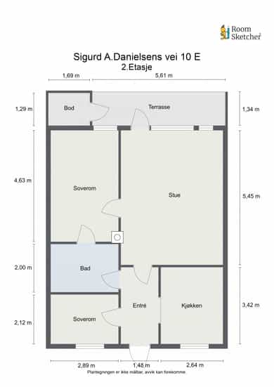 Arealmålingen er utført med laser. Det er bruken av rommene på befaringsdagen som definerer P-rom og S-rom, rommene kan likevel være i strid med teknisk forskrift og mangle godkjennelse fra kommunen.