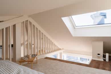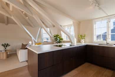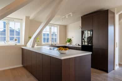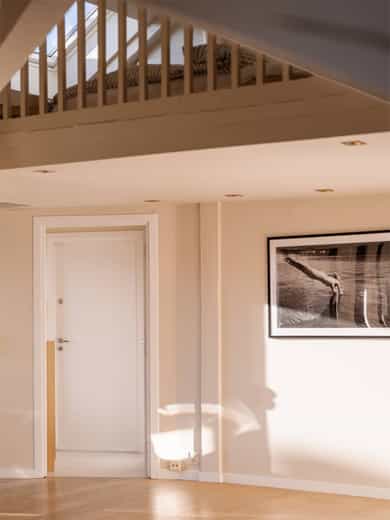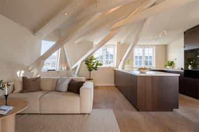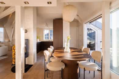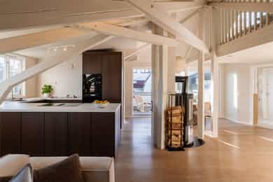 1983: Loftet ble bygget om til leiligheter.