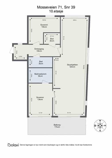 Moderne og behagelig 3-roms endeleilighet i 10.etasje. God standard og fenomenal, langstrakt utsikt. Parkering.