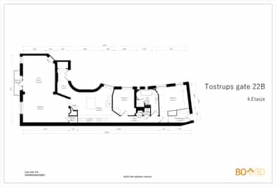 Det foreligger ferdigattest for eiendommen Tostrups gate 22 - Rehabilitering balkonger - datert 2007. Ferdigattest utstedes av bygningsmyndighetene på grunnlag av mottatt dokumentasjon fra kontrollansvarlige når et søknadspliktig tiltak er utført i samsvar med tillatelsen og øvrige krav etter plan- og bygningslovgivningen. At ferdigattest eksisterer, gir ingen garanti for bygget er oppført i henhold til tillatelsen og gjeldende regelverk eller at det senere er utført arbeid på bygget som ikke er byggemeldt eller godkjent. Det foreligger ikke ferdigattest, men ekspedisjonsdokument for eiendommen Tostrups gate 22 A-D - Hjørungavåggata 8 - Vaaningshus - datert 1903. Ekspedisjonsdokument er forgjengeren til ferdigattest. Ekspedisjonsdokumentet er ferdig attestert, og dokumenterer at bygget er registrert lovlig oppført. At ekspedisjonsdokument eksisterer, gir ingen garanti for at bygget er oppført i henhold til tillatelsen og gjeldende regelverk eller at det senere er utført arbeid på bygget som ikke er byggemeldt eller godkjent. Byggemeldte tegninger: Det foreligger godkjente og byggemeldte tegninger, men de stemmer ikke med dagens bruk. Leiligheten er ombygget i forhold til godkjent tegning. Revet og forandret vegger og leilighetens utseende i forhold til godkjente tegninger. Flyttet kjøkken fra hovedsoverom og til dagens plassering. Fjernet lang gang gjennom leiligheten. Bygget og utvidet baderom. Bygget hovedsoverom med eget omkledningsrom. Det kan være avvik fra dagens rombruk/rombenevnelser sammenlignet med det som er byggemeldt/godkjent.