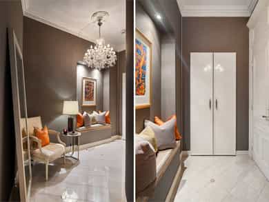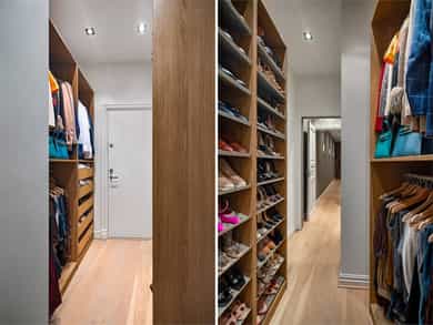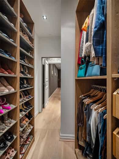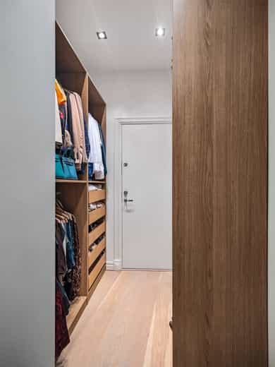 • Innredet hovedsoverom med omkledningsrom og skap.