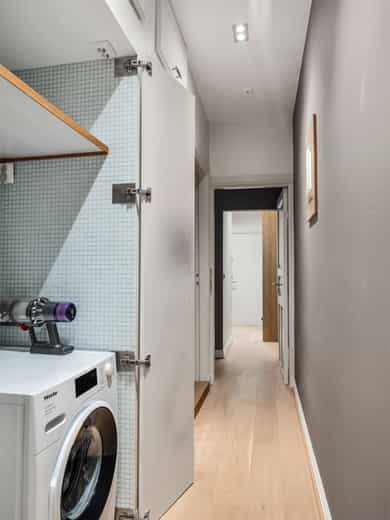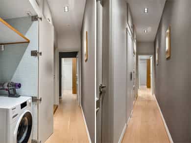 Om leiligheten: For tilstandsgrader se punktet "Takst og Tilstand" og underpunktet "Byggemåte" for informasjon. Kjøkken: Innredning fra KVIK (2008) med glatte folierte fronter. Polert naturstein benkeplate med nedfelt underlimt kum. Fliser på vegg mellom benken og overskap. Frittstående kjøkkenøy med polert naturstein benkeplate og spiseplass. Integrerte elektriske artikler med Miele stekeovn, Miele keramisk Miele induksjonstopp og kaffemaskin, oppvaskmaskin fra Electrolux. Frittstående kjøleskap og fryser med kaldt vann og isbiter fra Whirlpool. Elektrisk avtrekksvifte fra Gorenje. Det er kjøkkenventilator med avtrekk ut. Eier opplyser: Innredning langs veggen er montert av en tidligere eier. Dagens eier har montert frittstående kjøkkenøy, skap med kaffemaskin og stekeovn, samt ny benkeplate på opprinnelig innredning. Vinrom: Innredning i vinrom med opplyst plass for ca. 250 flasker. Innvendig er det montert eget kjøleanlegg. Eier opplyser: Rommet er bygget av ett spesialfirma for oppbevaring av vin. Vin med kjøleanlegg er ikke kontrollert eller funskjonsprøvet under befaringen. Dette må utføres av egen fagmann. Tilstandgraden er gitt ut fra alder, visuell observasjon under befaringen samt opplysninger fra eier om bruken. Bad: Bad med adkomst fra gang. Bygget nytt av tidligere eier i ca. 2007. Veggene har marmor fliser. Taket er malt. Gulvet er flislagt med elektriske varmekabler. Baderommet er innredet med badekar, dusj, wc og servant. Hvit porselen. Frittstående badekar med dyser for bobler. Glassdør til dusjen. Vegghengt toalett med skjult sisterne. Benk i Kirsebær med naturstein benkeplate og servant. Downlights i himlingen. Aktuell byggeforskrift er tekniske forskrifter i perioden 1997-2010. Ingen dokumentasjon foreligger. Toalettrom: Toalettrom med wc og servant. Hvit porselen. Vegghengt toalett med skjult sisterne. Elektrisk avtrekksvifte. Automatisk lys. Downlights i himlingen. Skap med opplegg for vaskemaskin: I gangen er det et skap med fliser på gulvet og veggene. Opplegg for vaskemaskin. Innvendige Overflater Gulv: Fliser i entré, toalett og baderom. Øvrige rom har 1-stavs parkett. Vegger: Fliser i baderom og toalett. Øvrige rom er malt. Himling: Malte overflater. Ildsteder: Leiligheten har to ildsteder. Peis i kjøkken med glassdør i fronten og glass på en kortside. Fliser som omramming rundt peisen. Fliser på gulvet i front av peisen. Peis i stuen med glassdør i fronten. Fliser som omramming rundt peisen. Fliser på gulvet i front av peisen. Eier opplyser: Peisene er montert av en tidligere eier. Fliser som omrammer og fliser på gulvet er montert av dagens eier i 2008. Balkong: Balkong på 3 m² med adkomst fra stuen. Andre installasjoner: • Lys i leiligheten styres med fjernkontroll, Mueller Comfort. • Automatisk lys i flere skap. • Downlights i flere himlinger. Selve anleggene er ikke kontrollert da dette er utenfor kompetanseområdet til takstmannen. Det tas derfor spesifikt forbehold om tilstanden på anlegget, er ikke mulig å undersøke uten destruktive inngrep. For ytterligere kontroll må det brukes egen fagmann. Diverse utstyr: • Dørtelefon med portåpner. • Opplegg for kabel-tv/bredbånd. • Det er sentralt brannvarslingsanlegg i gården. Røykvarsler og egnet slukkemiddel skal følge boligen ved salg. Selgers egenerklæring ligger vedlagt i salgsoppgaven. Det er utarbeidet en tilstandsrapport for boligen. Denne følger vedlagt i salgsoppgaven. Se denne for nærmere informasjon. Erfaringsmessig bør det alltid påregnes noe kosmetisk oppgradering av utstyr, overflater og innredninger i brukte boliger. Det vises forøvrig til rapporten for beskrivelser og vurderinger av tilstandsgrader. Alle innvendige og utvendige arealangivelser, samt beskrivelser av bygningen er hentet fra vedlagte tilstandsrapport/boligsalgsrapport. Salgsoppgaven er basert på selgers opplysninger til takstmann og megler. Videre er det innhentet opplysninger fra kommunen og andre relevante kilder. Tomtegrenser er ikke kontrollert. Det kan være avvik fra dagens rombruk/rombenevnelser sammenlignet med det som er byggemeldt/godkjent. Meglerforetaket oppfordrer interessenter til å lese gjennom fullstendig prospekt/salgsoppgave med vedlegg. Interessenter oppfordres også til å undersøke eiendommen nøye, gjerne sammen med sakkyndig. Dette bør gjøres før bud inngis.