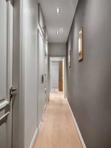 Bygård som er tatt i bruk i 1901. Oppført med 4 etasjer samt kjeller og dels innredet loft. Leiligheten ble oppgradert til dagens standard i 2008 av eier med nye gulver samt overflater på vegger og himlinger. Eier fikk bygget vinrom samt entré. Innredet hovedsoverom med omkledningsrom og skaper. Montert skaper i lite soverom og entré. Montert frittstående øy i kjøkken samt skap med stekeovn og nye benkeplater. Montert omramming av polert naturstein rundt peisene. Montert nye vinduer i stuen. Lagt nye fliser på gulvet i entré. Selve hovedkjøkkenet og vinduer mot gårdsplassen er montert av en tidligere eier. Deler av elektrisk anlegg, sikringsskap samt vann og avløpsledninger er montert av en tidligere eier. Takstmann har satt TG3 på følgende: Innvendig > Pipe og ildsted Leiligheten har mursteinspipe. En pipe i stuen og en pipe mellom kjøkken og spisestuen Det er i følge original tegning også en pipe i tidligere kjøkken, nå hovedsoverom. Denne pipen er i følge eier ikke i bruk i gården, er blendet for bruk. Det ble i 2014 foretatt rehabilitering av 7 piper ved støping av en Isodor - skorsteinsforing innvendig i pipene, samt utskifting av 14 feieluker i gården. Vurdering av avvik: • Pipevanger er ikke synlige. Piper er ikke kontrollert eller funksjonsprøvet under befaringen. Dette må utføres av egen fagmann. Tilstandgraden er gitt ut fra alder og visuell observasjon under befaringen. Pipene er rehabilitert innvendig med nytt støpt pipeløp, og med opprinnelig konstruksjon utvendig. Det er påvist avvik i forhold til synlige pipevanger. Etter ombygning av leiligheten, er det ikke 2 synlige pipevanger. 2 synlige sider på lettklinkerpipe, ellers 4 synlige sider på mursteinspiper. Dersom man rehabiliterer pipe med nytt røykrør innvendig er det kun krav til 2 synlige pipevanger. Takstmann har satt TG2 på følgende: Utvendig > Dører To-fløyet malt inngangsdør med trådglass fra byggeåret. Sikkerhetslås. Vurdering av avvik: • Inngangsdør fra byggeåret. • Ikke brann eller lydkvalifisert. Mer enn halvparten av forventet brukstid er passert på dører. Det bemerkes at eldre dører har begrenset isolasjonsevne, mindre varmetap kan oppnås ved bytte av dører. Faren for punktering er til stede for eldre dører i dører. Normal tid før utskifting av tredører og aluminiumsdører er 20-40 år. Utvendig > Balkonger, terrasser og rom under balkonger Adkomst til balkong på ca. 3 m² fra stuen. Oppført i betong med malt overflate. Malt smijerns rekkverk, høyde 87 cm. Vurdering av avvik: • Åpninger i rekkverk er ikke i henhold til krav i dagens forskrifter. • Rekkverket er for lavt i forhold til dagens krav til rekkverkshøyder. Det er kun overflate som er kontrollert, ikke underliggende konstruksjon. Tilstandsgrad er gitt med tanke på observert tilstand, alder og normal forventet levetid. Innvendig > Etasjeskille/gulv mot grunn Etasjeskiller er av trebjelkelag. Helningsavvik: I kjøkken er det målt 10 mm gjennom rommet fra gang til åpning spisestuen. I spisestuen er det målt 15 mm fra åpning kjøkken til vindu. Gjør oppmerksom på at målinger er foretatt tilfeldig steder i leiligheten. Ved måling på andre steder i boligen, kan dette gi ett annet resultat på helningsavvik. Vurdering av avvik: • Det er målt høydeforskjell på mellom 15-30 mm gjennom hele rommet. Tilstandsgrad 2 gis med bakgrunn i standardens krav til godkjente måleavvik. Innvendig > Skap med opplegg for vaskemaskin I gangen er det ett skap med fliser på gulvet og veggene. Opplegg for vaskemaskin Vurdering av avvik: • Ikke montert sluk i gulvet. • Ikke montert automatisk avstenging av vann ved lekkasje. • Ikke montert ventilasjon. Tekniske installasjoner > Ventilasjon Boligen har naturlig ventilasjon. Vurdering av avvik: • Naturlig ventilasjon gis på generelt grunnlag tilstandsgrad 2 da dagens strenge krav til ventilasjon ikke er oppfylt, til tross for at denne typen ventilasjon er normalt for boliger/leiligheter bygget i denne tidsperioden. Tekniske installasjoner > Elektrisk anlegg Sikringsskapet er plassert i omkledningsrom. Automatsikringer. Hovedbryter og måler er plassert i eget skap i kjelleren. 1. Foreligger det eltilsynsrapport de siste 5 år, og det er ikke foretatt arbeid på anlegget etter denne, utenom retting av eventuelle avvik i eltilsynsrapport (dvs en el-tilsynsrapport uten avvik)? Svar: Nei. Spørsmål til eier 2. Når ble det elektriske anlegget installert eller sist gang totalt rehabilitert (årstall)? Med totalt rehabilitert menes fullstendig utskiftet anlegg fra inntakssikring og videre. Svar: Deler av anlegget ble oppgradert under arbeidene i 2008. 3. Er alle elektriske arbeider/anlegg i boligen utført av en registrert elektroinstallasjonsvirksomhet? Svar: Ja. 4. Er det elektriske anlegget utført eller er det foretatt tilleggsarbeider på det elektriske anlegget etter 1.1.1999? Svar: Ja. Eksisterer det samsvarserklæring? Svar: Nei. Deler av anlegget ble oppgradert under arbeidene i 2008. 5. Foreligger det kontrollrapport fra offentlig myndighet – Det Lokale Eltilsyn (DLE) eller eventuelt andre tilsvarende kontrollinstanser med avvik som ikke er utbedret eller kontrollen er over 5 år? Svar: Nei. 6. Forekommer det ofte at sikringene løses ut? Svar: Nei. 7. Har det vært brann, branntilløp eller varmgang (for eksempel termiske skader på deksler, kontaktpunkter eller lignende) i boligens elektriske anlegg? Svar: Nei. 8. Er det tegn til at det har vært termiske skader (tegn på varmgang) på kabler, brytere, downlights, stikkontakter og elektrisk utstyr? Sjekk samtidig tilstanden på elektrisk tilkobling av varmtvannsbereder, jamfør eget punkt under varmtvannstank Svar: Nei. Generelt om anlegget 9. Er der synlig defekter på kabler eller er disse ikke tilstrekkelig festet? Svar: Nei. 10. Er det tegn på at kabelinnføringer og hull i inntak og sikringsskap ikke er tette, så langt dette er mulig å sjekke uten å fjerne kapslinger? Sva