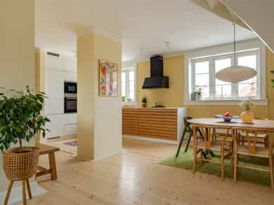 Lekker og gjennomgående 4-roms topp- og loftsleilighet over to plan i ettertraktede Lindern Hageby. Leiligheten ligger i 3. etasje med utbygget loft i 4. etasje og har en spennende og funksjonell planløsning med svært gode lysforhold og lite innsyn. Originale tregulv, lyse overflater og karakteristiske loftsdetaljer med skråtak, synlige bærebjelker og takvinduer gir boligen et særpreg. God intern beliggenhet, skjermet fra trafikk, med direkte tilgang til store, grønne fellesarealer. Høydepunkter: - 4-roms topp-/loftsleilighet - Gjennomgående planløsning med svært gode lysforhold - Stue med mulighet for vedovn - Imponerende takhøyde på loft (ca. 4,94 m i trapperom) - Originale tregulv og lyse overflater - Samlet gulvareal på 110,5 inkl boder i kjeller ca. 12 kvm og loft ca. 6.5 kvm