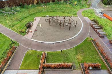 Sameiet har en pent opparbeidet tomt, med store fellesarealer. Utenfor stuen ligger en lekeplass, med mye boltreplass for de minste!
