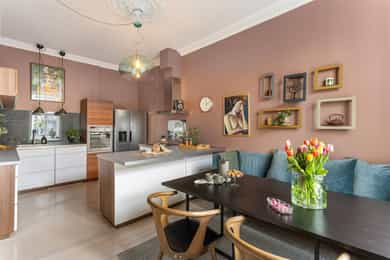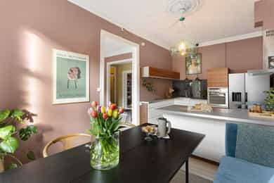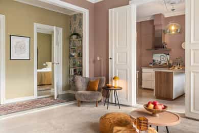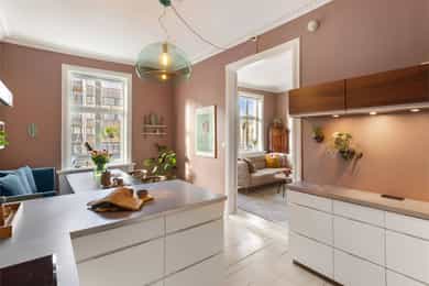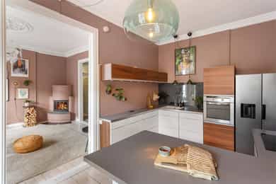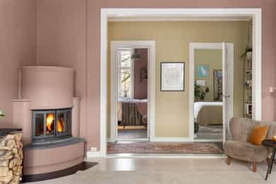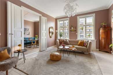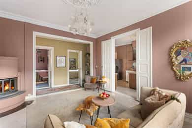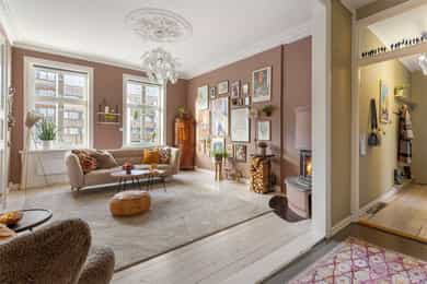 Gjennomgående, lys og klassisk 3-roms- Takhøyde 3,13 m - Peis - Rosett, stukkatur og doble fløydører - 2 sov mot bakgård