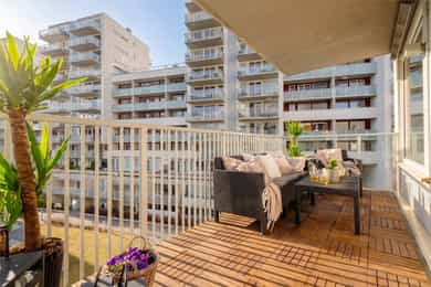 Åpen og lys 4-roms leilighet i 5. etasje | 2 vestvendte balkonger | 3 sov | Garasje* | Vendt mot gårdsrom