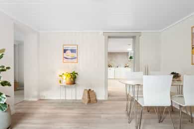 Strøken og totaloppusset enebolig med solrik tomt og garasje i barnevennlig området. Her kan du flytte rett inn i hus med god standard fra 2025 med muligheter for utleie eller som generasjonsbolig. Plan 1: Stor lys hjørnestue med peis, romslig spisestue med utgang til terrasse og luftig kjøkken med god skap- og benkeplass. Tre romslig soverom og to delikate baderom renovert i 2025. Entré med vindfang og lagring, samt bi-inngang. Innvendig bod/kott. Plan U: Luftig stue med peis, romslig spisekjøkken og stue. Tre godkjente soverom og et nytt flott baderom samt vaskerom. Egen inngang, og innvendig bod. INFO: - Ny garasje - Etterisolert - Nye vinduer - Ny drenering - Nyrenovert pipe - Vesentlig oppusset 2025 - Meget godt med lagringsplass - Dokumentasjon på arbeid foreligger