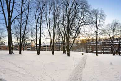 DAGLIGVARE / KJØPESENTER / KULTUR Leiligheten ligger i et tilbaketrukket og naturnært bomiljø i hellingen over Sandvika sentrum. Samtidig er det enkel tilgang til dagligvare ved Extra Dønski og Bunnpris Gjettum, og bare 7 minutters sykkelvei ned til en stor Menybutikk på Sandvika storsenter. Utenfor er det travle handlegater med kaféer, restauranter og et variert kulturliv med konsertscener, kino, kulturhus, bibliotek og nytt kommunehus. Videre er det enkel tilgang til store varehus på Rud. På Høvikodden har Henie Onstad kunstsenter museumsrestaurant, barneverksted og spennende utstillinger. BUSS / TOG / TRIKK Fra Ringeriksveien er det bussavganger mellom Sandvika og Smestad, denne bussen kjører også over til Vøyenenga og Kirkerudbakken skisenter. Det er bare 3 stopp ned til Sandvika bussterminal, der det er bussavganger til alle deler av Bærum, og kun få meter til togstasjon. Her går flytog, regiontog og lokaltog med jevnlige avganger på strekningen Lillestrøm/Spikkestad/Drammen, med rundt 15 minutters reisevei til Oslo. Det er avganger med t-bane fra Hauger. TRENING, MARKA OG FJORDEN Det er deilige turstier i Hamangskogen, og innover i Løkkeåsen er det flotte utsiktspunkter mot fjorden. Det er også fint å ta runden nede langs Engervannet, eller følge elvepromenaden ut til fjorden. Her er det kyststier, padlemuligheter, moderne badeanlegg på Kadettangen og badeviker på Kalvøya. Adressen gir enkel tilgang til treningssentre, og et allsidig sportstilbud ved Bærum Idrettspark, med svømmehall, ishall, ballbaner, friidrettstilbud og squashbaner. Det er enkel tilgang til tennisklubb og flere anerkjente golfanlegg. Bussen utenfor går direkte til Kirkerud, med skianlegg på vinteren og videre adkomst til stier på Tanumplatået. I Vestmarka og Bærumsmarka er det turstier, åpne markahytter og et langstrakt nettverk av preparerte ski- og lysløyper.