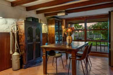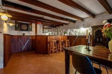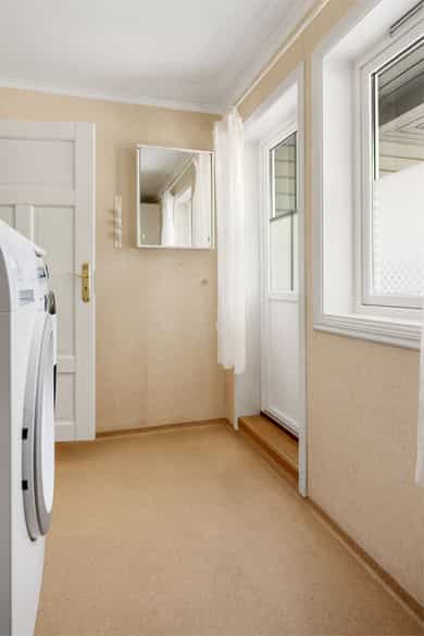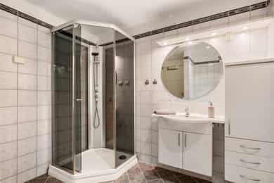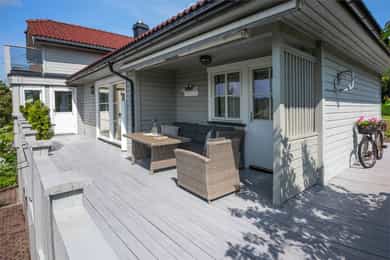 ENEBOLIG Utvendig: Valmet tak tekket med takstein. Renner og nedløp i plastbelagt stål. Pipe med helbeslag. Yttervegger over grunnmur oppført i isolert bindingsverk. Fasader med trepanel med etablert luftespalte mot grunnmur. Valmet tak med kaldtloft, oppført med takstoler, undertak med sutakplater. Loft godt ventilert langs takfot og videre fra kneloft opp i skråtak. Vinduer med ramme og karm i tre med 2-lags isolerglass. Terrassedører og skyvedør med ramme og karm i tre med 2-lags isolerglass fra 2000. Skyvedør kjellerstue/bar i tilsvarende konstruksjon fra 1989. Terrassedør med ramme og karm i tre med 2-lags isolerglass. Takterrasse 10 kvm i 2. etasje over kjøkken oppført i trekonstruksjon med terrassebord opplektet på tettesjikt. Rekkverk i tre/glass. Terrasse oppført i trekonstruksjon med terrassebord på bjelkelag understøttet på trestolper. Rekkverk i tre. Innvendig: Sokkeletasje med støpt gulv på grunn, etasjeskiller oppført i trekonstruksjon med bjelkelag. Stålpipe med tilknyttet murt peis med glassfront. Sokkeletasje med innvendig påforet vegg. Foretatt hulltaking i påforet vegg, uten å påvise unormale forhold. Tomteforhold: Grunnmur fundamentert på antatt komprimert bærelag. Det er ikke observert vesentlige sprekker som symptom på setninger. Grunnmur utvendig fuktsikret med knotteplast (Platon). Ikke påvist symptomer på svekket drenssystem. Murt/støpt grunnmur på sålefundamentering. Enkelte riss påvist, men ikke vesentlige sprekker som symptom på setninger. Inntaksledning vann i kobber. Plast avløp. GARASJE Dobbelgarasje oppført i mur/betong-konstruksjon. Tak med hulldekkelementer med påstøp og tettesjikt, etablert takterrasse/hageanlegg på tak.Støpt gulv på grunn. 2 stk leddporter med portautomatikk. Noe saltutslag underside betongdekke i garasje, symptom på fuktvandring gjennom betongdekket. Vær oppmerksom på alder tettesjikt, foreta jevnlig besiktigelse. I forbindelse med salget er det utarbeidet en tilstandsrapport for boligen som viser boligens tilstandsgrader, hvor TG1 er velfungerende forhold, TG2 er forhold som må påregnes utbedret på sikt, og TG3 er forhold som må påregnes utbedret omgående. Følgende forhold er kommentert med TG3: - Terrassedør kjøkken. Dør råtebeskadiget nedre del. Konsekvens/tiltak: Utskifting. Kostnadsestimat: 10 000 - 50 000. Følgende forhold er kommentert med TG2 – avvik som kan kreve tiltak: - Nedløp og beslag: Det mangler tilfredsstillende adkomst til pipe for feier. Konsekvens/tiltak: Stigetrinn for feier må monteres. - Takkonstruksjon/Loft: Lokalt område mellom gratrenne og luftehatt med råtebeskadiget undertak lokalt. Det opplyses tidligere lekkasje her ble utbedret med nytt gratrenne beslag, men undertak ikke skiftet. Ingen fukt påvist ved besiktigelse, dvs. ingen aktiv lekkasje. Konsekvens/tiltak: Ytterligere undersøkelser for omfang, lokal utbedring. Kostnadsestimat: 10 000 - 50 000. - Vinduer: Kjøkken syd med fuktgjennomtrengning i karm ved slagregn. Konsekvens/tiltak: Eier opplyser nytt vindu er bestilt og vil bli skiftet såsnart det ankommer. - Dører: Terrassedør soverom og loftsstue med fuktbeskadiget nedre del av utvendig brystning. Konsekvens/tiltak: Lokale utbedringer. Dersom avvik ikke utbedres er det fare for videre skadeutvikling. - Terrasse: Rekkverket er for lavt i forhold til dagens krav til rekkverkshøyder. Mer enn halvparten av forventet brukstid er oppbrukt på tettesjikt/membran. Konsekvens/tiltak: Det er ikke krav om utbedring av rekkverkshøyde opp til dagens forskriftskrav. Jevnlig ettersyn tettesjikt, vær oppmerksom på alder. - Radon: Radonmålinger er ikke foretatt, heller ikke andre tiltak mot radon, eiendommen ligger i et område som i NGU Radon aktsomhetskart er definert med "moderat til lav" aktsomhetsgrad. Konsekvens/tiltak: Det bør gjennomføres radonmålinger. - Innvendige trapper: Det mangler håndløper på vegg i trappeløpet. Konsekvens/tiltak: Håndløper må monteres på vegg for å tilfredsstille krav på byggetidspunktet. - 1. etasje - Vaskerom - Overflater Gulv: Det er mulighet for at det kan forekomme vannlekkasje på våtrommet hvor vann ikke vil gå til sluk. Det er påvist avvik i fallforhold til sluk i forhold til krav i forskrift på byggetidspunktet. Gulv uten etablert fall. Konsekvens/tiltak: Til tross for avviket i fall/høydeforskjell til sluk, vil gulvet fortsatt kunne lede vann mot sluket, men med redusert effektivitet. Dette kan potensielt øke risikoen for vannansamling i enkelte områder av vaskerommet. - 1. etasje - Vaskerom - Sluk, membran og tettesjikt: Vurdering basert på alder. TG gis med bakgrunn i at mer enn halvparten av forventet brukstid for membran/tettesjikt er passert. Det er nå ingen symptomer på funksjonssvekkelse, men vær oppmerksom på at dette er en risikokonstruksjon. Konsekvens/tiltak: Det er viktig å merke seg at levetiden til en membran varierer basert på kvalitet, installasjon og bruk. Eldre membraner kan bli sprø og sprekke opp, noe som fører til at de mister sin vanntettende funksjon. Dette kan resultere i vannlekkasjer gjennom vegger og gulv og fuktskader. - 1. etasje - Vaskerom - Sanitærutstyr og innredning: Det er påvist fuktskjolder/svelling i skapinnredning. Konsekvens/tiltak: Skadede deler av innredning/utstyr må skiftes ut/utbedres. - 1. etasje - Bad - Overflater vegger og himling: Det er vindu/dør med ikke fuktbestandige materialer i våtsonen (ved vask, dusj, badekar, osv.), løsningen eller byggematerialet er uegnet. Konsekvens/tiltak: Dersom det ikke gjøres tiltak, kan dette medføre oppfukting, oppsvelling og forringelse av materialer over tid og fuktskader på tilstøtende konstruksjoner. Det er påvist andre avvik:. Enkelte fliser med hullyd, symptom på event. bom/løse fra underlag. Konsekvens/tiltak: Jevnlig ettersyn fliser for event. utvikling. - 1. etasje - Bad - Sluk, membran og tettesjikt: Vurdering basert på alder. TG gis med bakgrunn i at mer enn halvparte