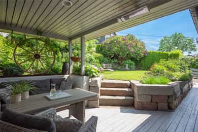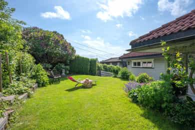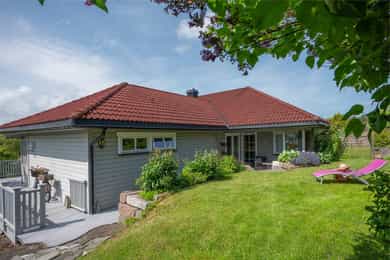 Flott, stor familiebolig m/solrike uteplasser og nydelig, grønn hage - Dobbelgarasje - Nær sentrum - Mulighet for hybel!