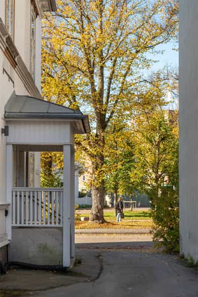 Som i de fleste gamle bygårder finner vi også her en stor bakgård. Her finner du inngangspartiet og en større plass som er felles for beboerne.